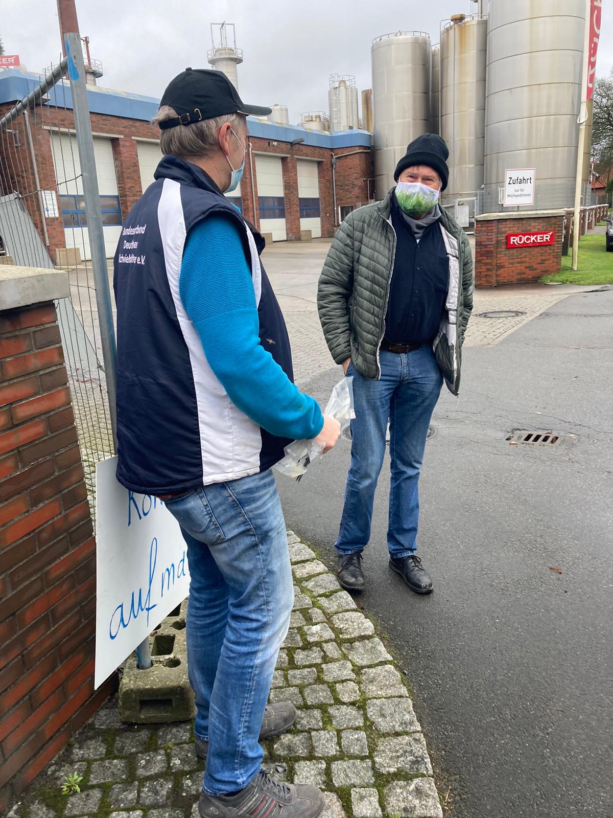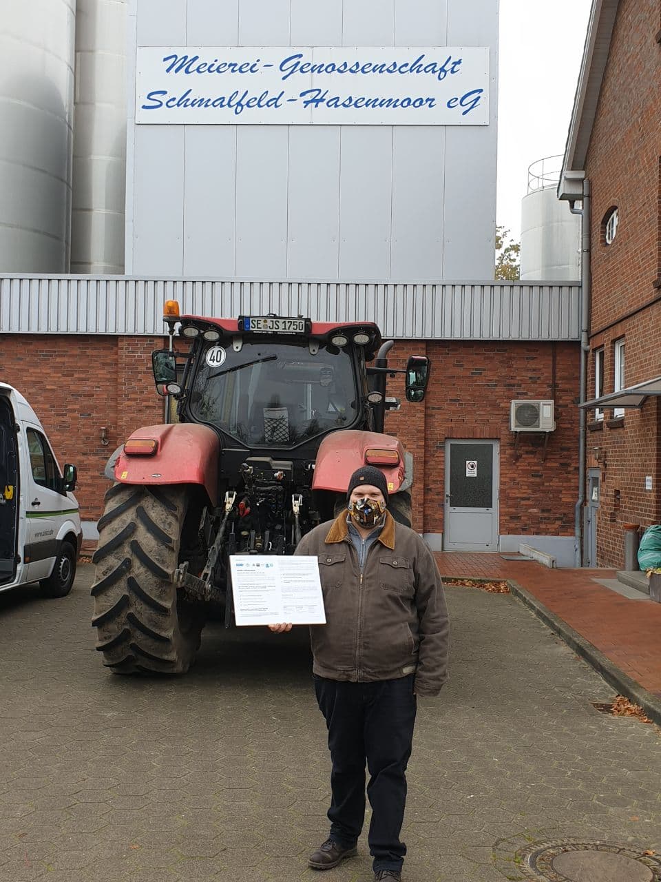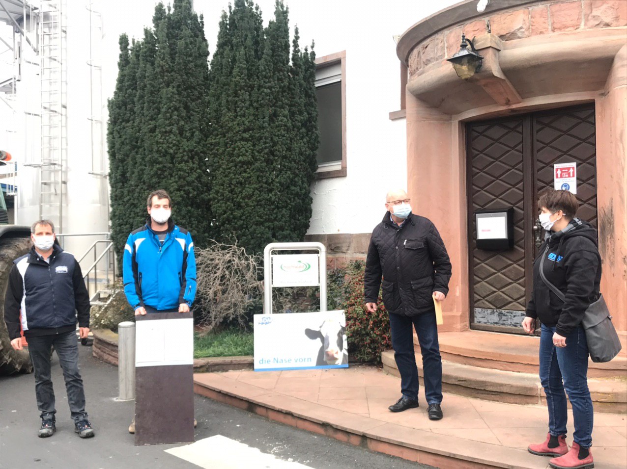 Landwirte mit dem Papier vor der DMK Deutsches Milchkontor in Neubörger