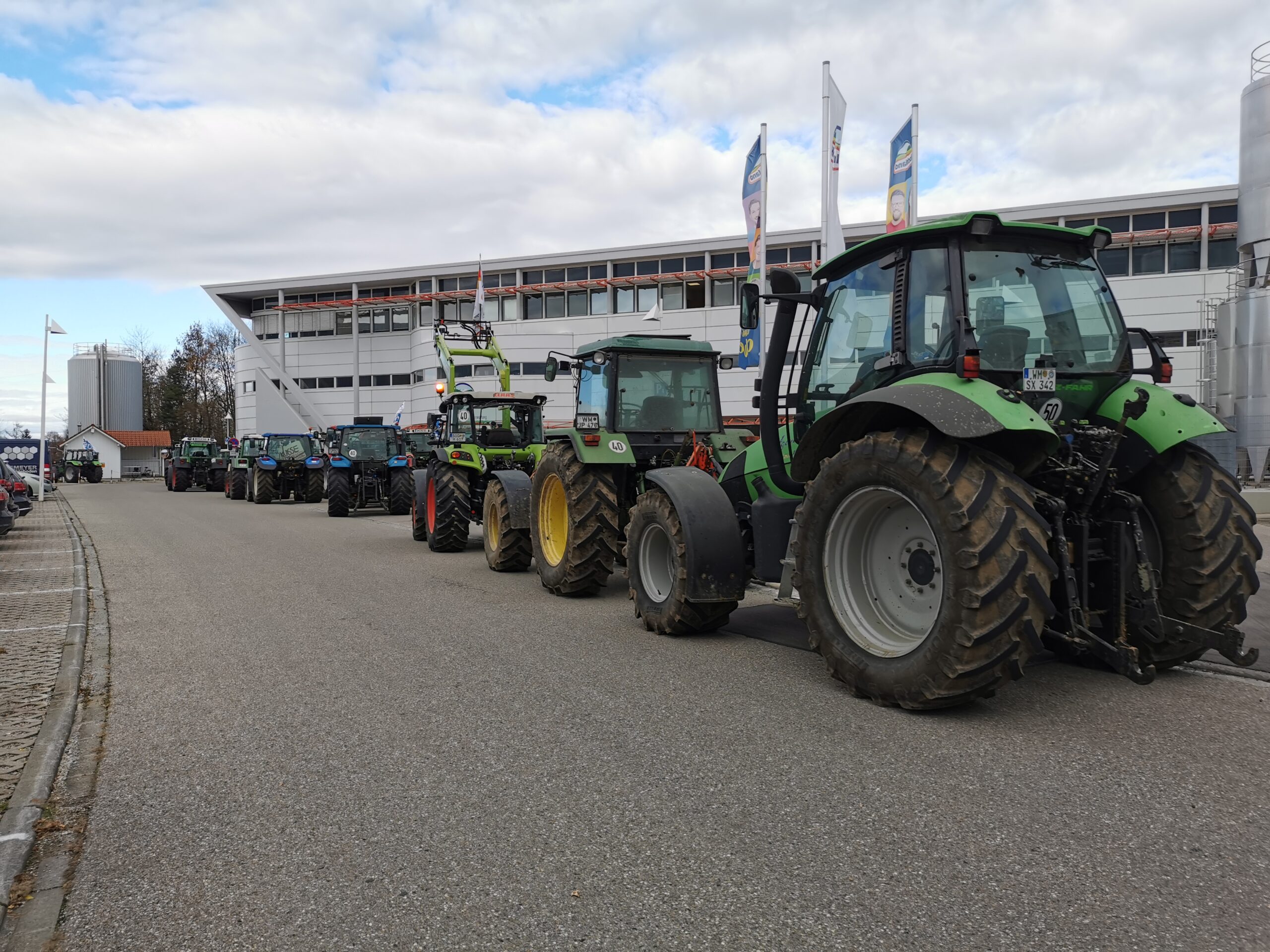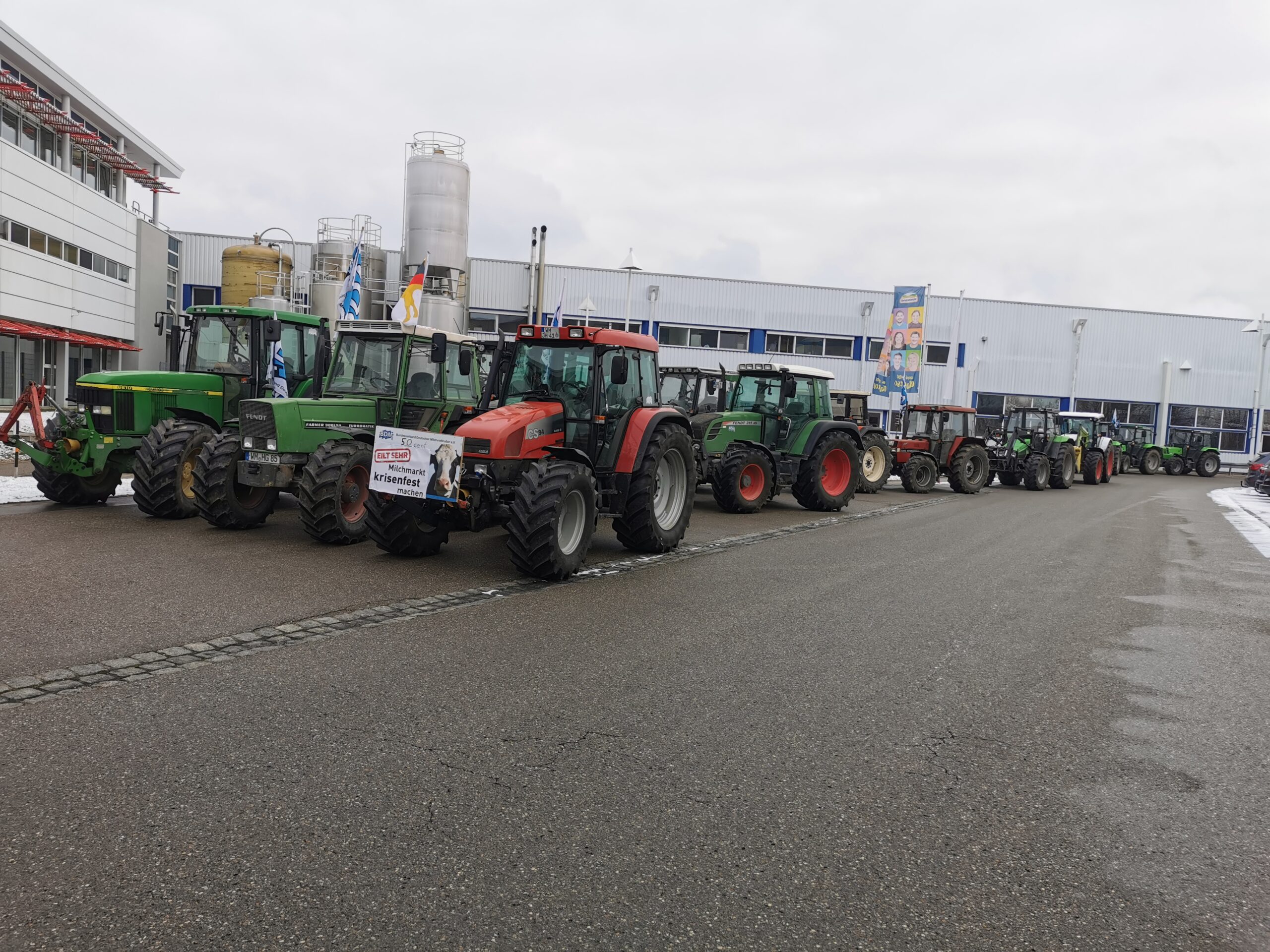 Schlepper vor der Molkerei Hochland in Schongau