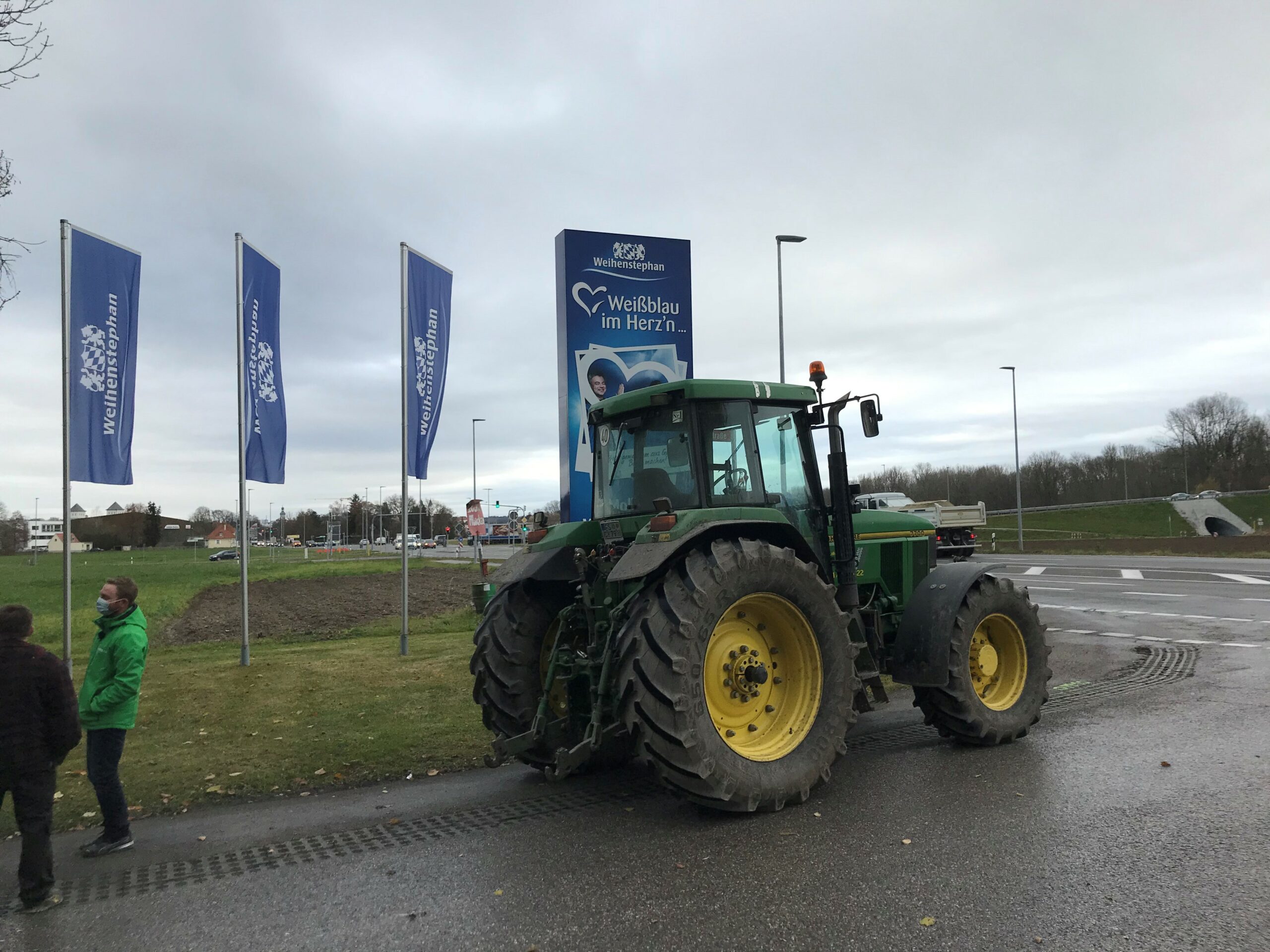 Traktoren in der Einfahrt von Weihnstephan mit Demonstranten