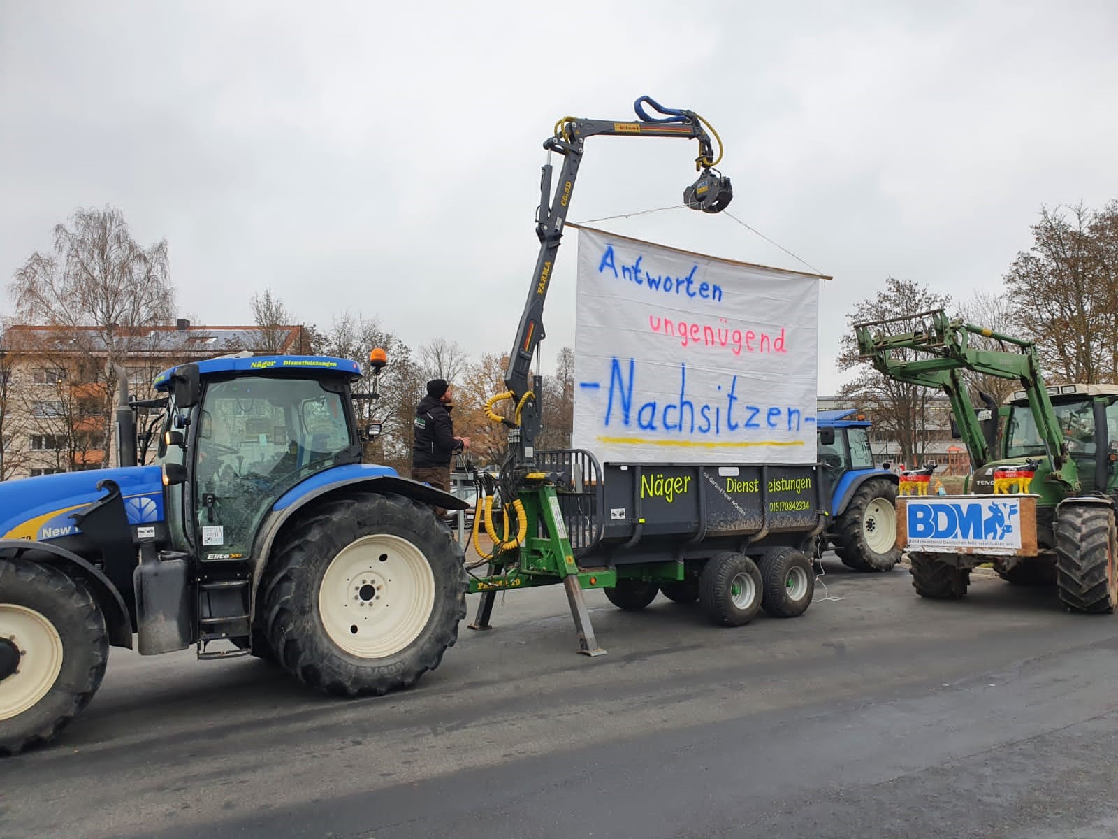 Wir sind gleichzeitig an vielen Orten in ganz Deutschland unterwegs. Die Landwirtinnen und Landwirte sind quer durch alle Regionen und tierhaltenden Sektoren betroffen! Das zeigen wir hier.