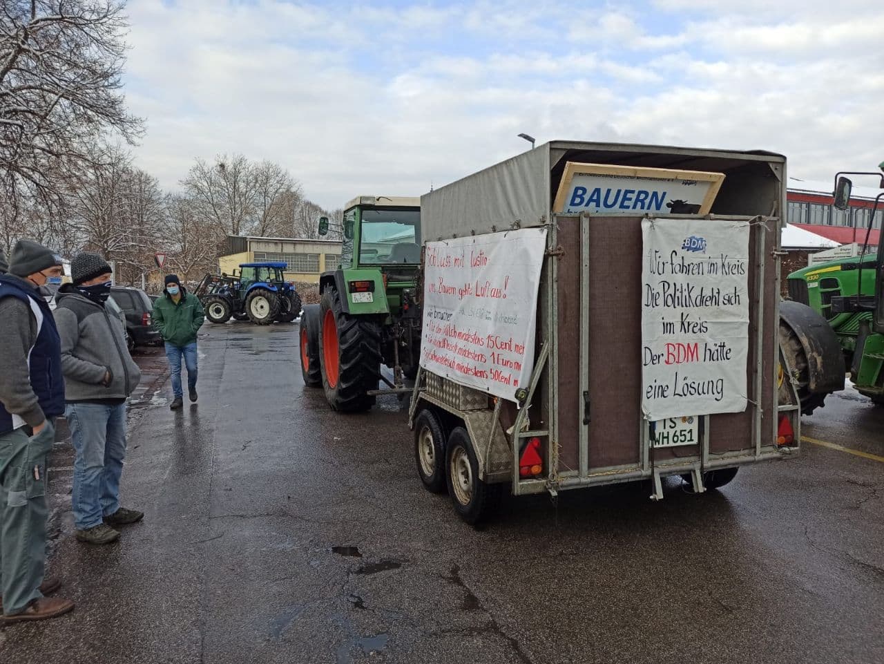 Landwirte stehen in der Einfahrt von Müritz-Milch in Waren