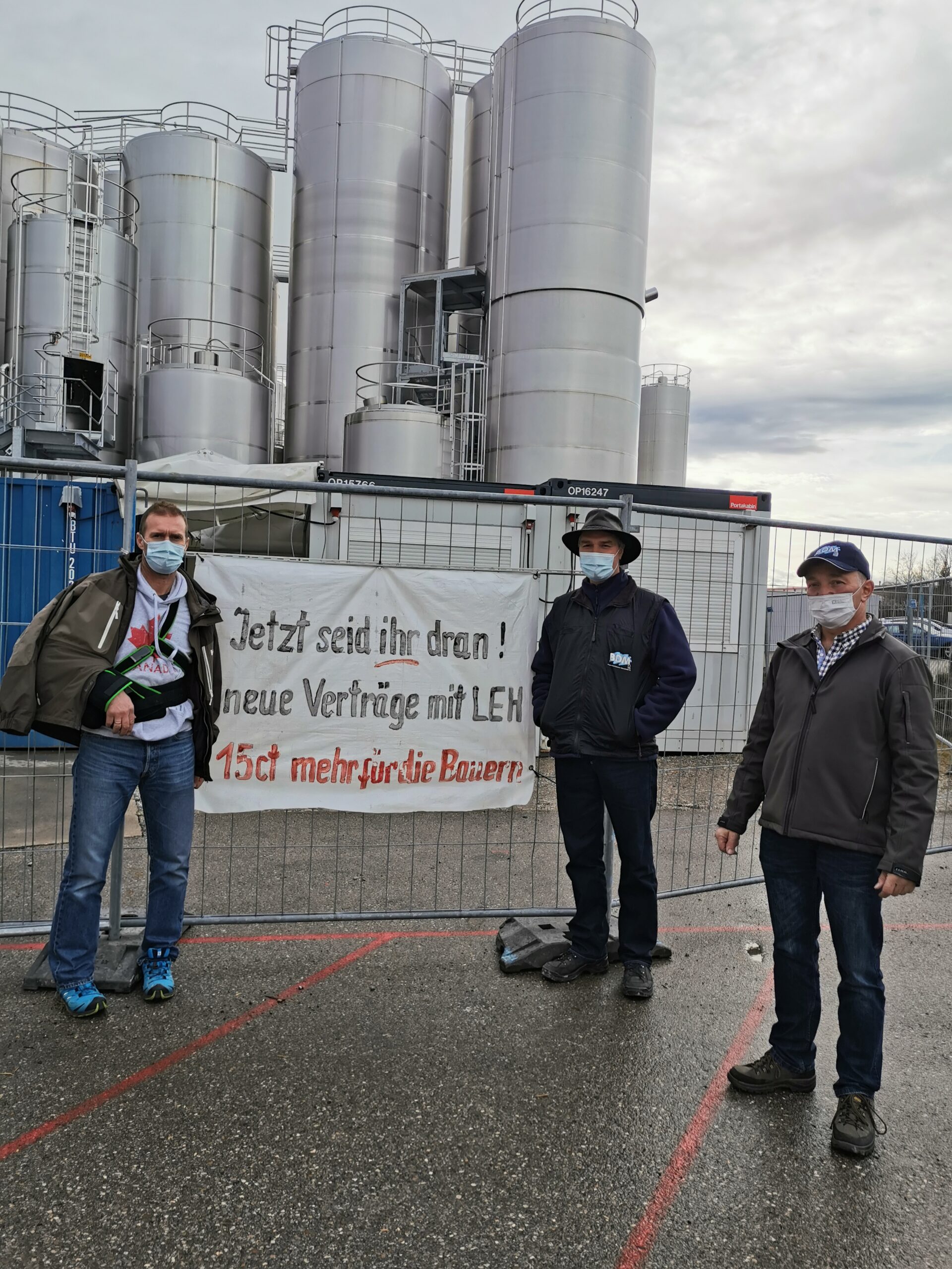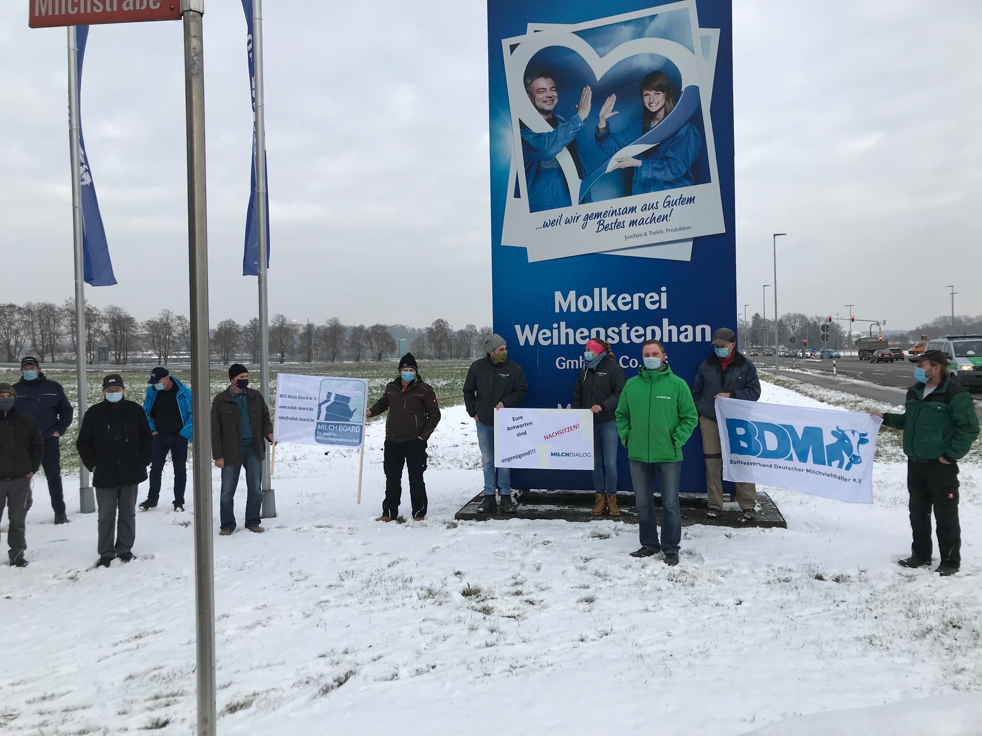 Landwirte vor dem Tor der Molkerei Weihenstephan in Freising