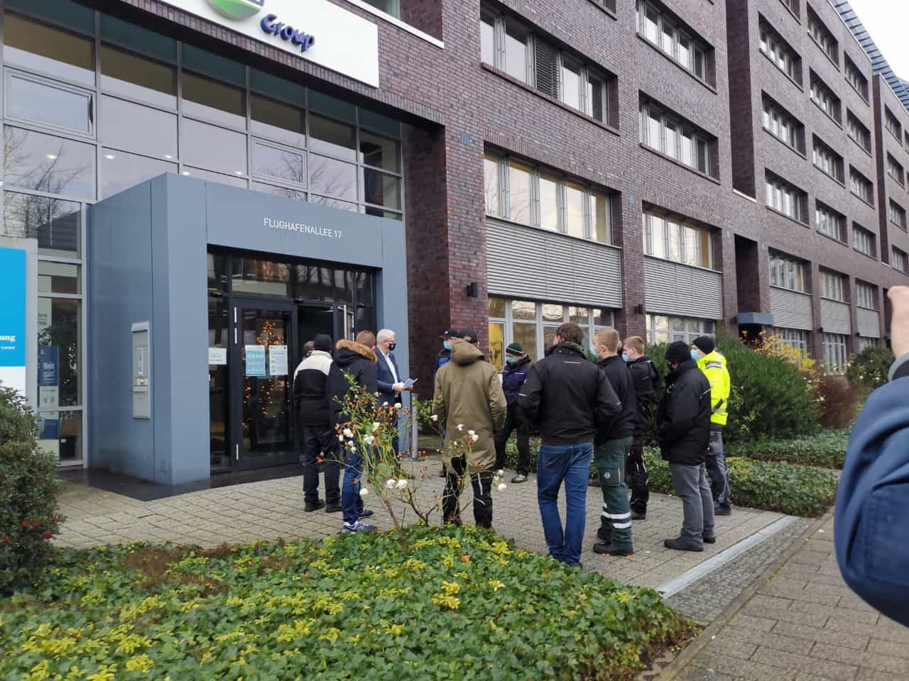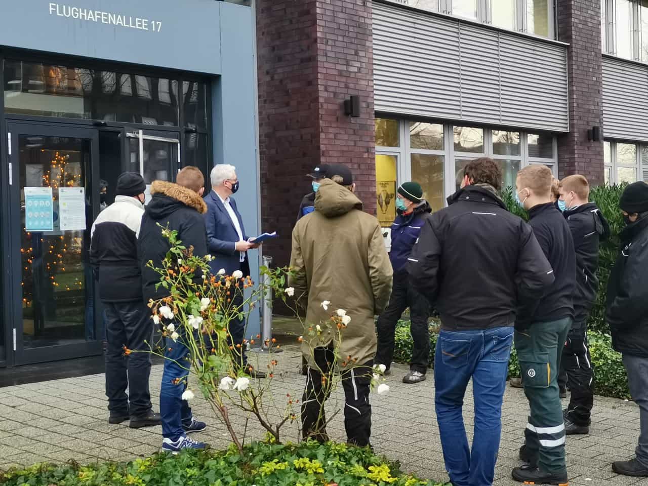 Vier Personen vor Werkeingang