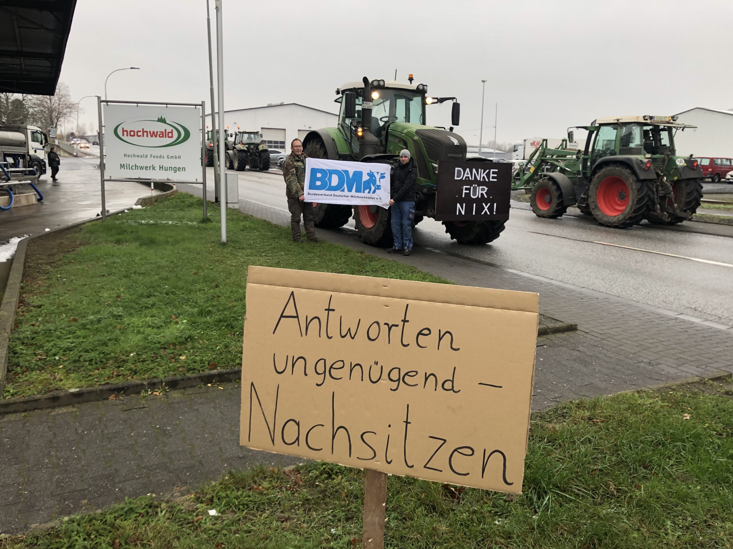 Landwirte vor der Molkerei Hochwald in Hungen